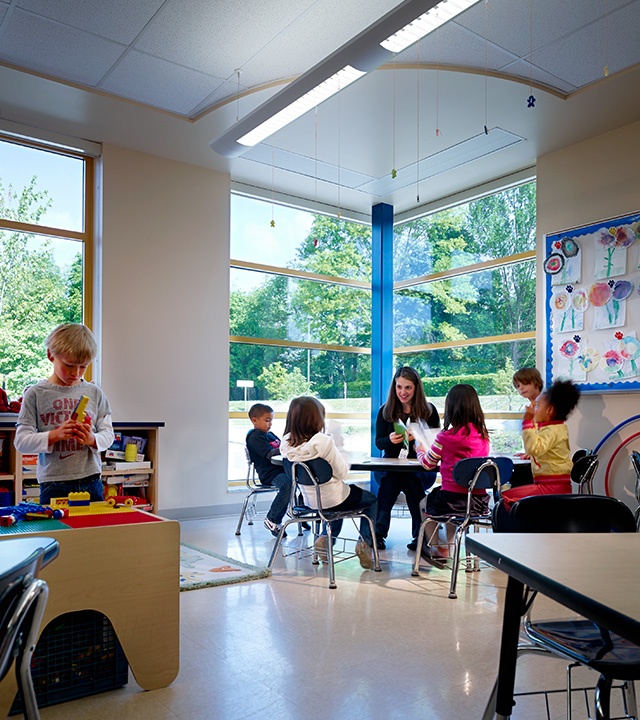 The project included the complete renovation of all educational spaces, as well as new mechanical, electrical, plumbing, roofing and window systems. The classrooms are equipped with new casework and sinks, state-of-the-art Smart Boards, projectors and speaker systems. The addition consisted of kindergarten rooms, an art room, library and administration offices. The music and instrumental rooms were equipped with new sound systems. The gymnasium, auditorium, cafeteria and kitchen all received extensive renovations, including installation of new equipment in each space.